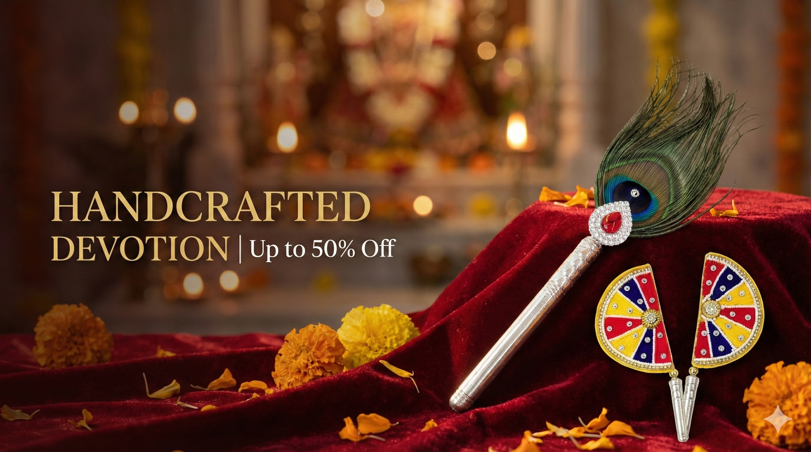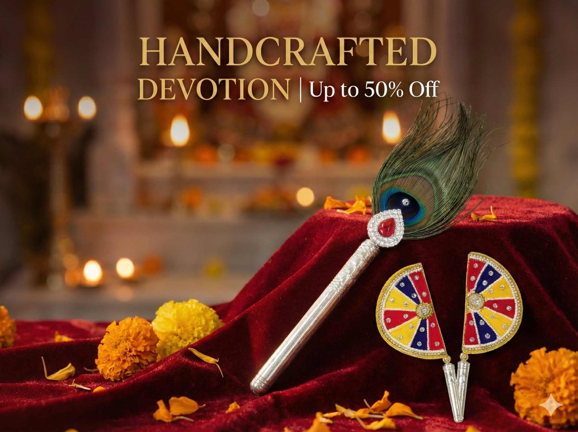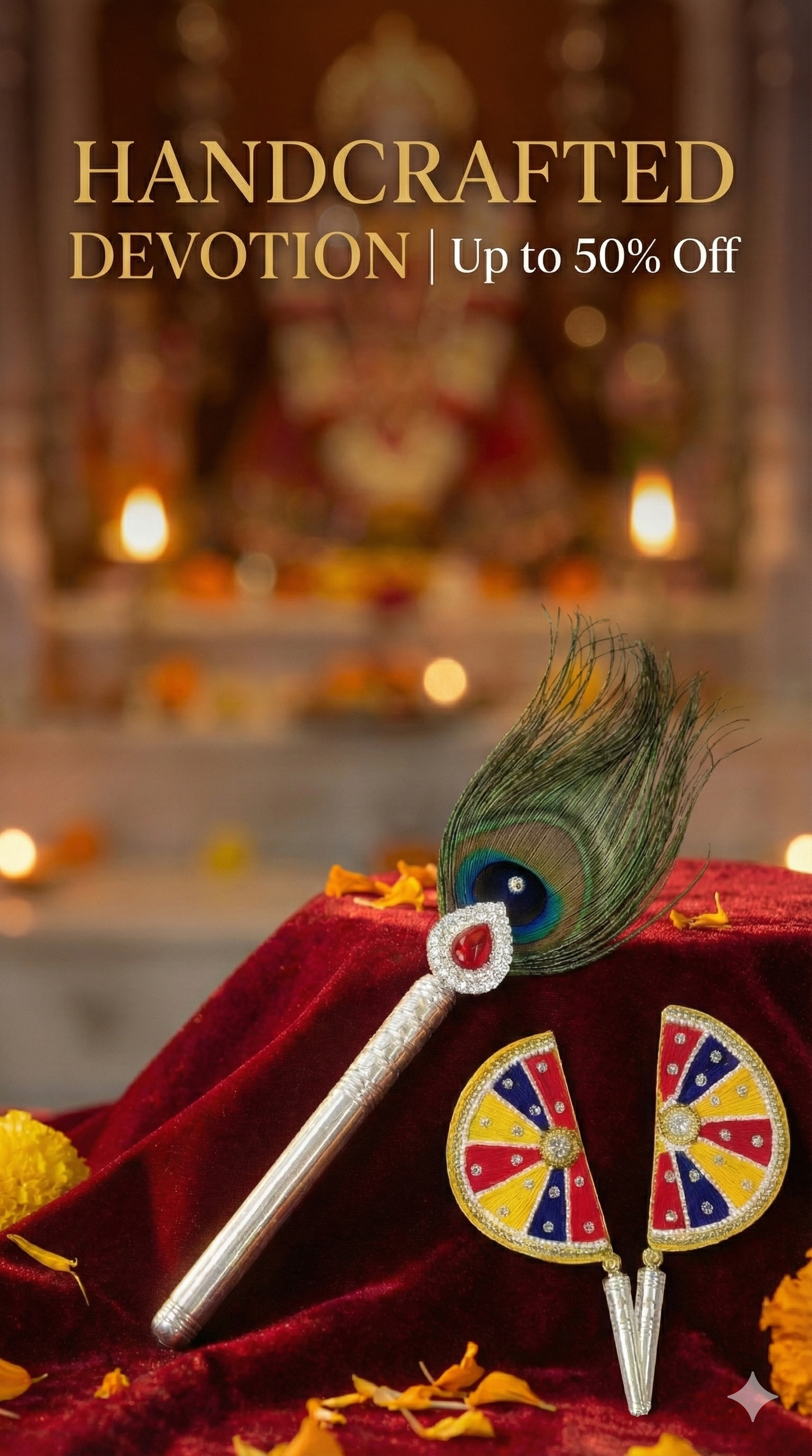 Pure Silver (Chandi) Mor Pankhi/Hand Fan/Puja Fan for Shree Krishna, Shree Radha Rani, Thakur ji, Laddu Gopal (Pair of 2) Description According to Vastu Shastra, keeping a silver fan in a clean pla...You Save Rs. 1,790.00That's 60% OFF Regular Price!Regular price ₹1,189.00Sale price ₹1,189.00 Regular priceUnit price ₹ / per₹2,979.00