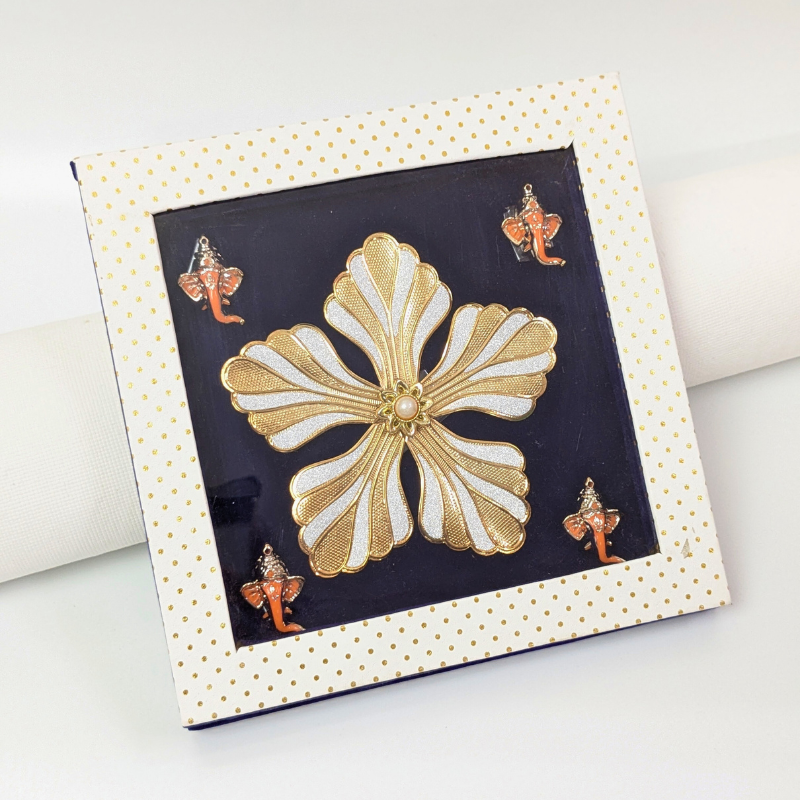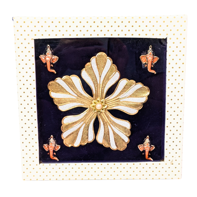 Shape: Square with a 5-petal flower and 4 ganesha.