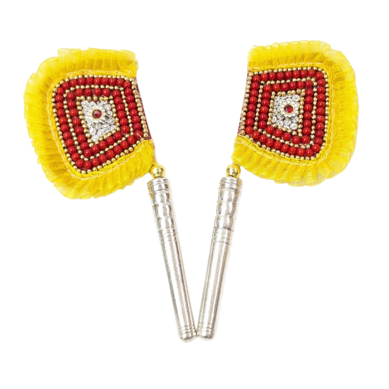 Pure Silver (Chandi) Pankhi/Hand Fan/Puja Fan for Shree Krishna, Shree Radha Rani, Thakur ji, Laddu Gopal with Pearl Work (Pair of 2)