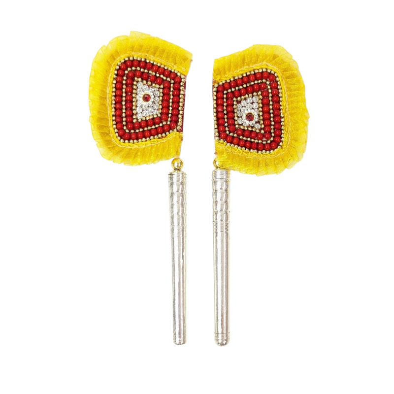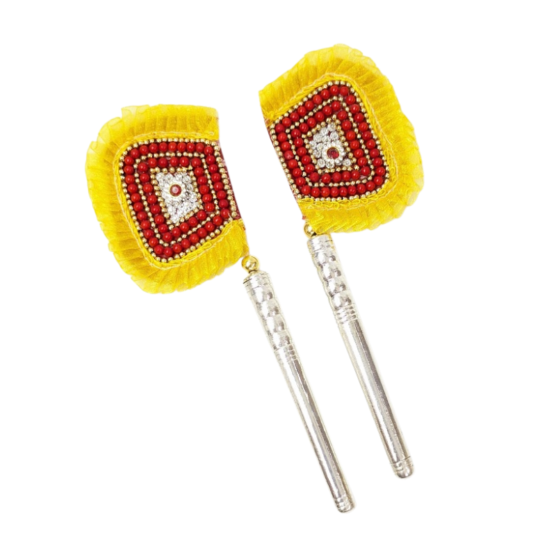 According to Vastu Shastra, keeping a silver fan in a clean place inside your home will remove negative energy and provide positive energy with its colors. This contributes to the protection of positive energy in the environment. Silver pankhi is mounted on a wooden stick with a pure silver base with purity of 97%–99%. This is also an auspicious gift for any occasion.